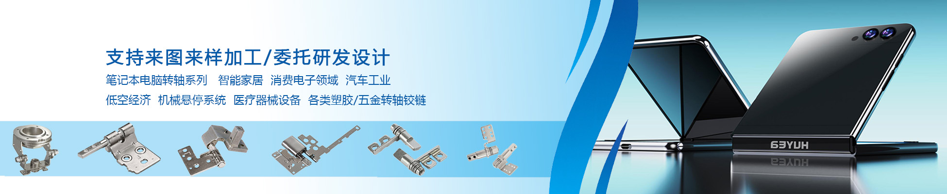 辉业凭借服务世界500强企业20+年积累的研发、生产管理、品控经验和优质的服务水平,建立了一套完整的定制加工和解决方案体系,有着周全的定制加工流程和一站式转轴(铰链)以及产品解决方案。完善的流程在为佳能、东芝、夏普、联想和兄弟的转轴(铰链)需求解决方案中获得高度评价,受到了业界普遍好评和市场关注。